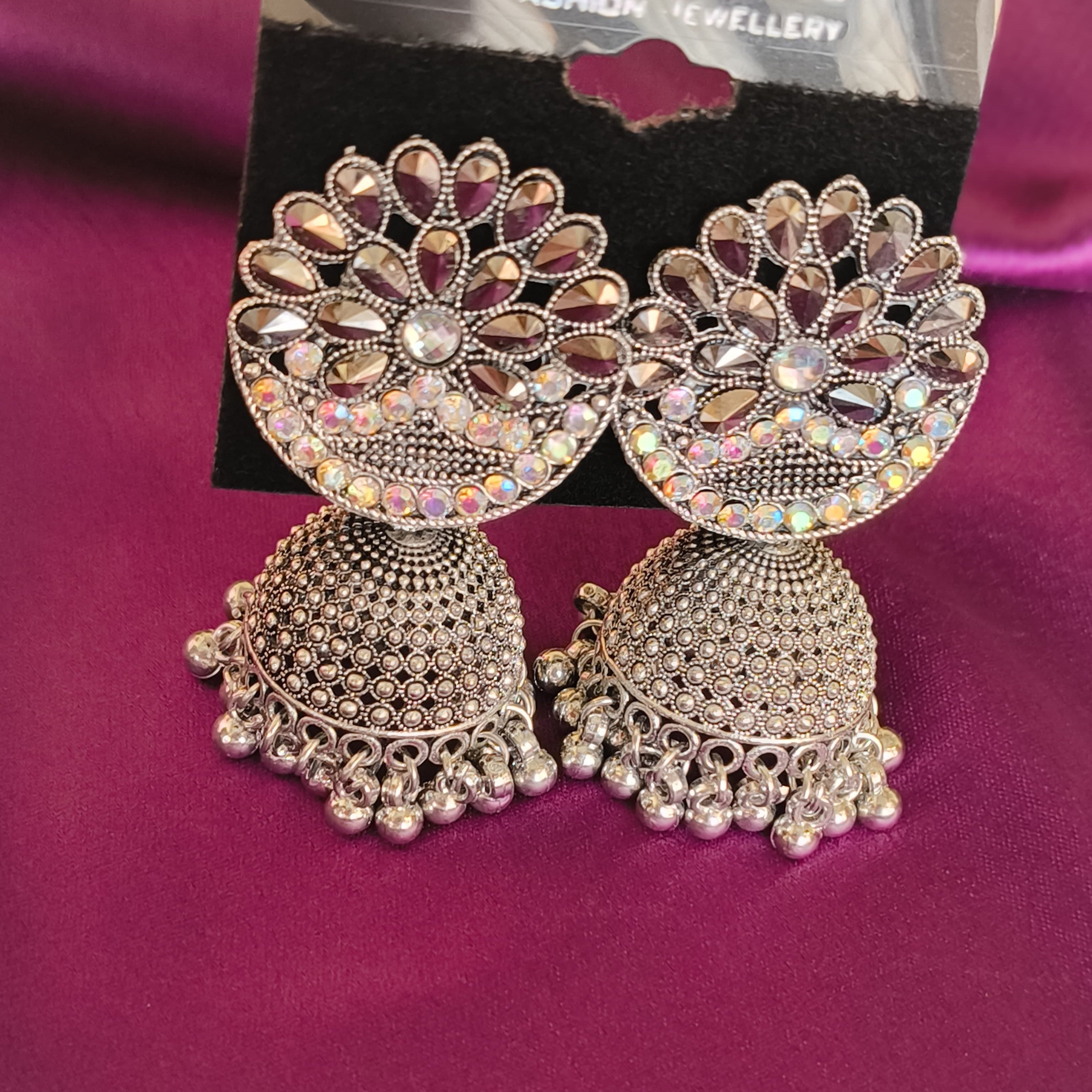 Silver Oxidized Glitter Jhumka With All Wear