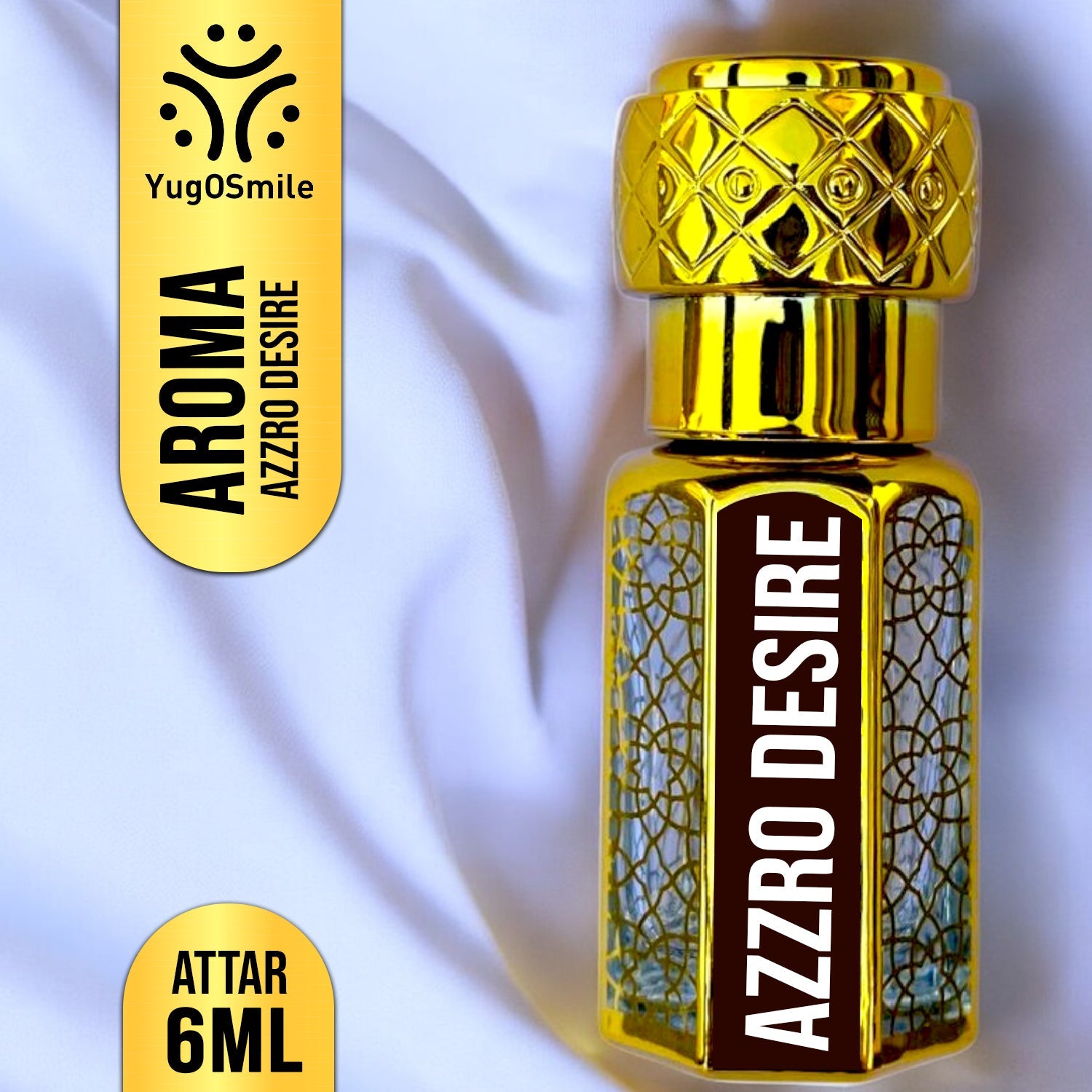 YUGOSMILE Azzro Desire Attar 6ml | 100% Pure Luxury Attar Oil | Long-Lasting Unisex Roll-On Perfume | Premium Arabic Fragrance for Men & Women | Alcohol-Free Exotic Scent